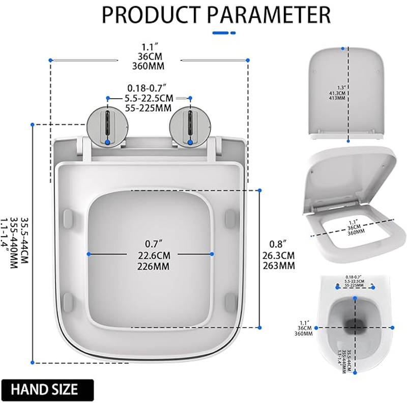Thickened anti-stress toilet seat:internal weighting design,strong bearing capacity.