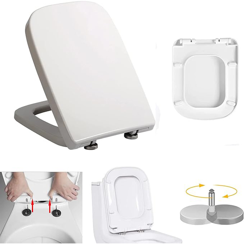 Square Toilet Seat, White Soft Close Quick Release Toilet Lid Cover