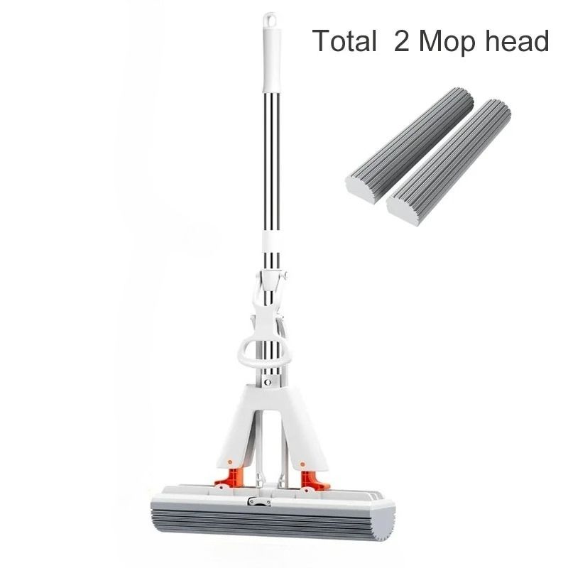 The mop is made of sponge. There are a total of 2 mop heads.