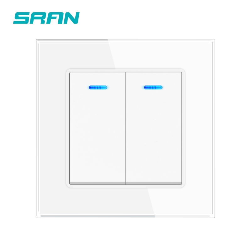 SRAN EU standard Wall Light Switch Tempered Glass Panel 1/2way Stairs Through Switches,The switch is turned off the LED turns on