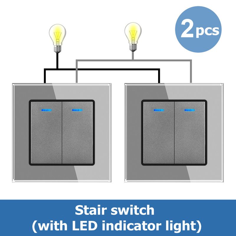 SRAN EU standard Tempered Glass Panel 1/2way Stairs Through Wall Light Switch With LED Indicator