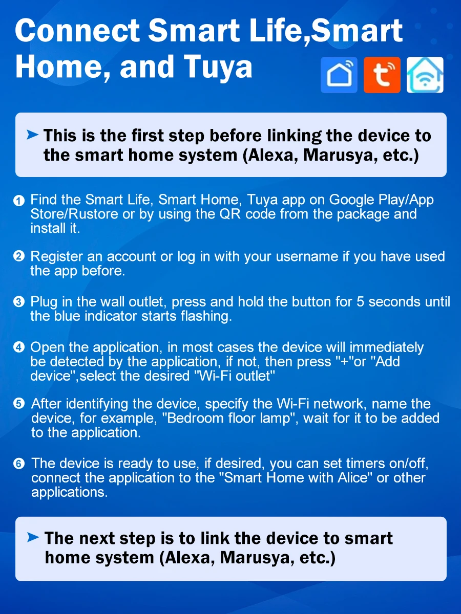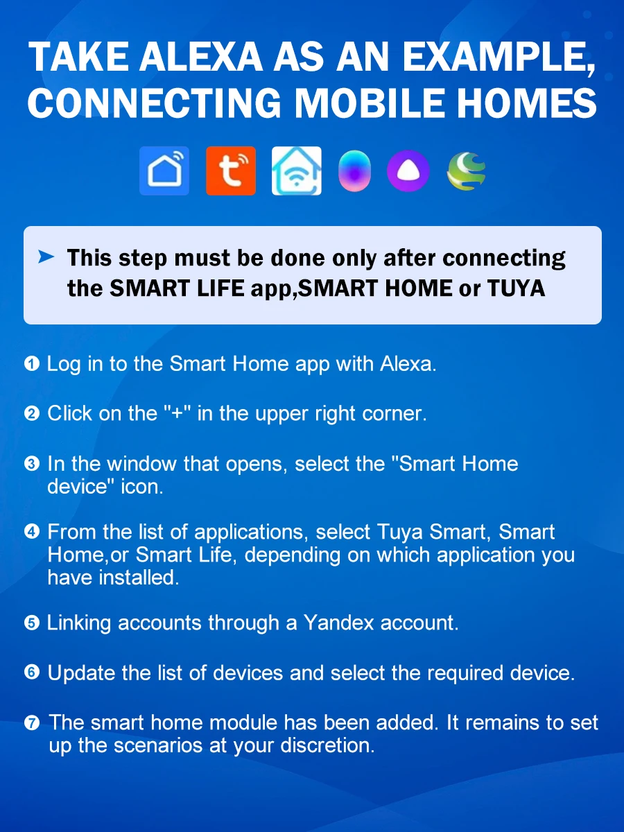 Download Tuya / Smart Life App to your smartphone from Apple App Store or Google Play, then connect App with Amazon Alexa or Google Home which enable you to voice control home appliances.
