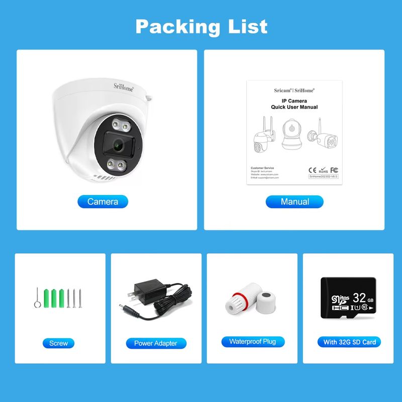 Srihome 4MP Dome IP Camera H.265 Security CCTV Wifi Camera Two Way Audio Alarm Push Onvif Video Surveillance Work On NVR SH030