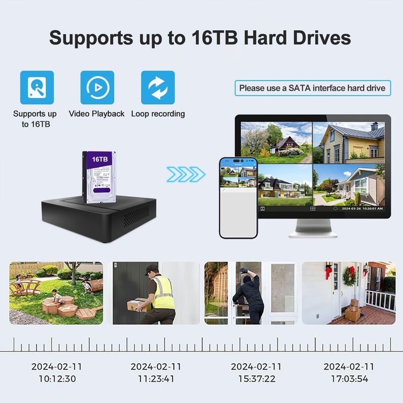 Supports up to 16TB / Video Playback/Loop recording