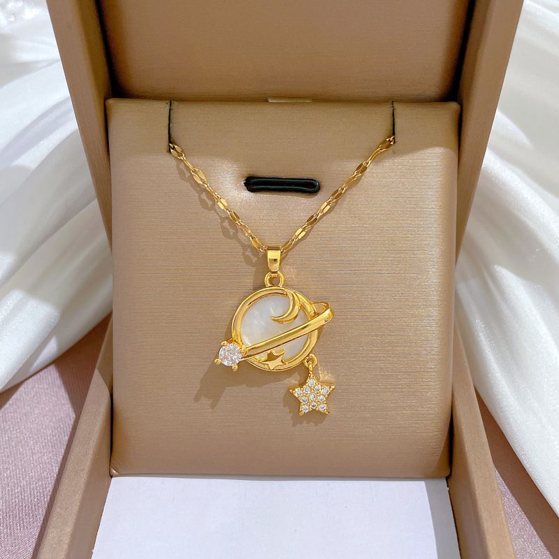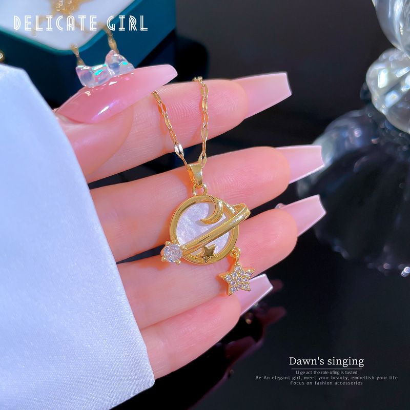 Stainless Shell Shiny Zircon Star Saturn Choker Clavicle Chain Necklace Planet Astronaut Couple Necklace For Women Pop Jewelry
