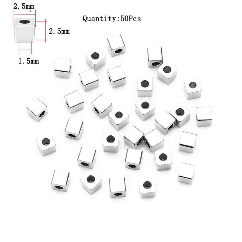 10-100Pcs Stainless Steel Beads Square Round Big Hole Loose Spacer Bead For Jewelry Making Charm Bracelets Necklace Finding