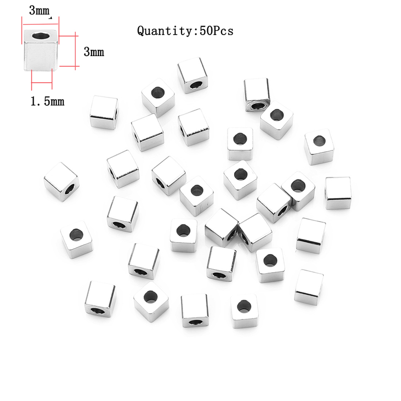 10-100Pcs Stainless Steel Beads Square Round Big Hole Loose Spacer Bead For Jewelry Making Charm Bracelets Necklace Finding