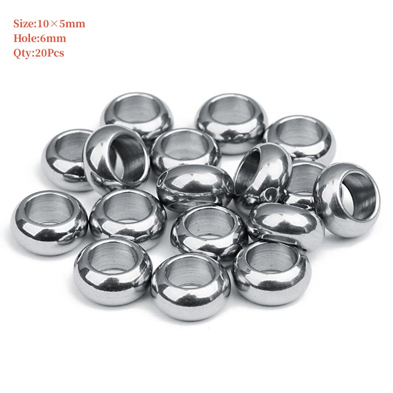 10-100Pcs Stainless Steel Beads Square Round Big Hole Loose Spacer Bead For Jewelry Making Charm Bracelets Necklace Finding