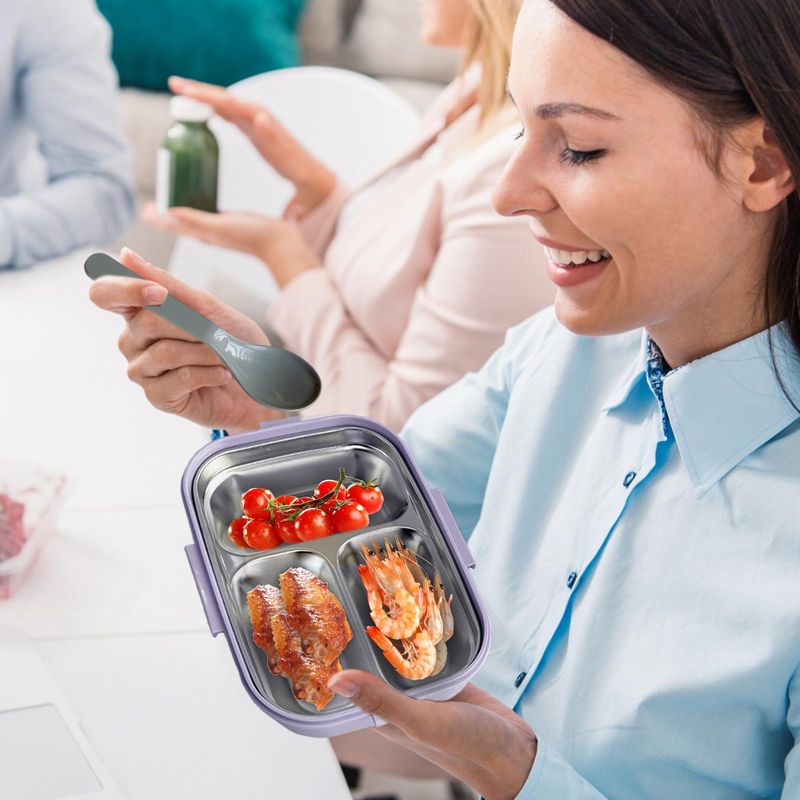 Stainless Steel Bento Box 3 Compartment Lunch Box Leakproof Insulated Food Container With Utensils For School Office Travel