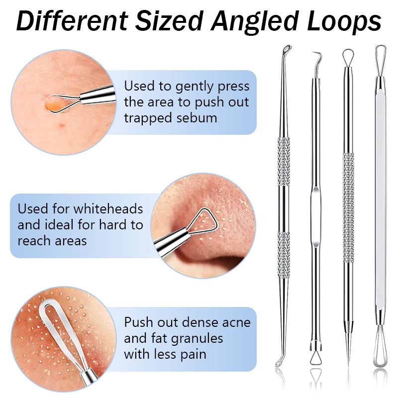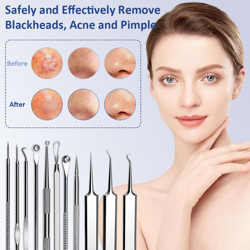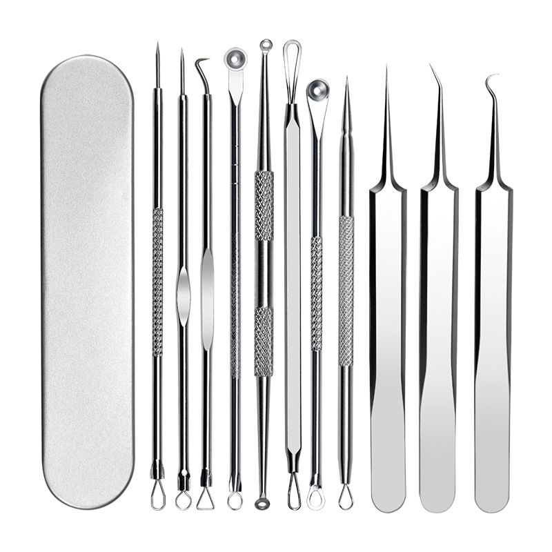 Stainless Steel Blackhead Removal Tool Set Acne Blackhead Clip Tweezers Dots Pore Cleaner Acne Needle Skin Cleanning Care Tools