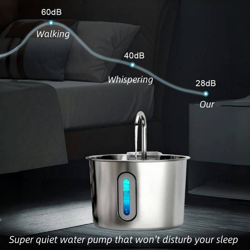 Crafted with food-grade 304 stainless steel that resists rust and bacterial growth, this pet fountain features a generous 2.2L capacity to ensure 3-5 days of continuous water supply for cats and small dogs.