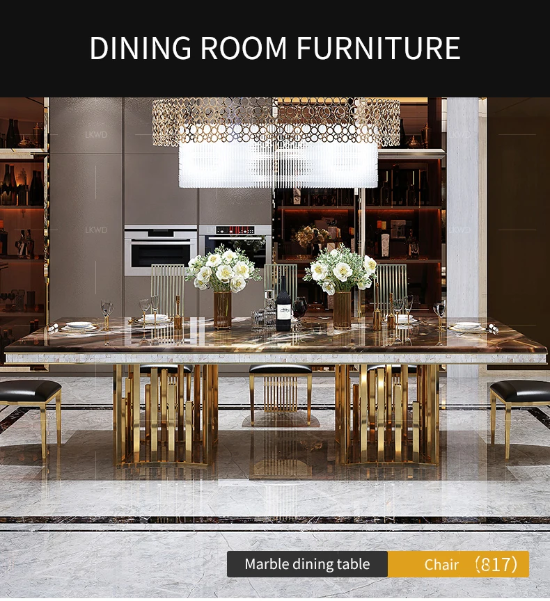 stainless steel Dining Room Home Furniture modern marble dining table rectangle table