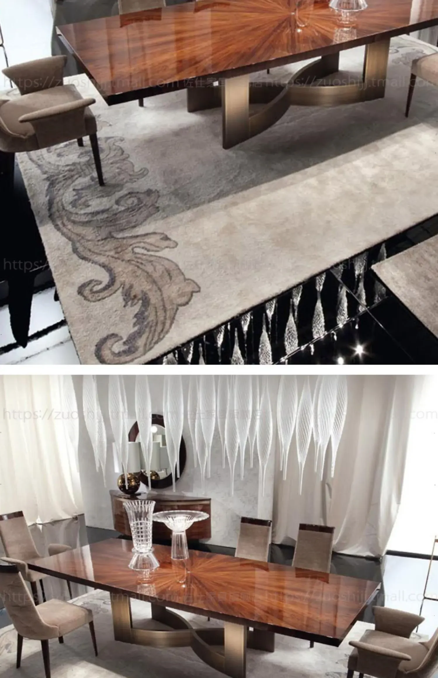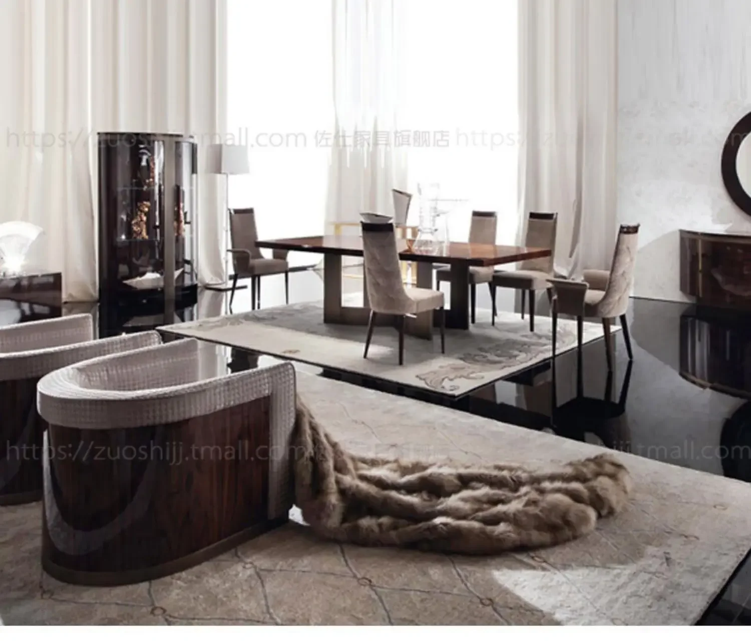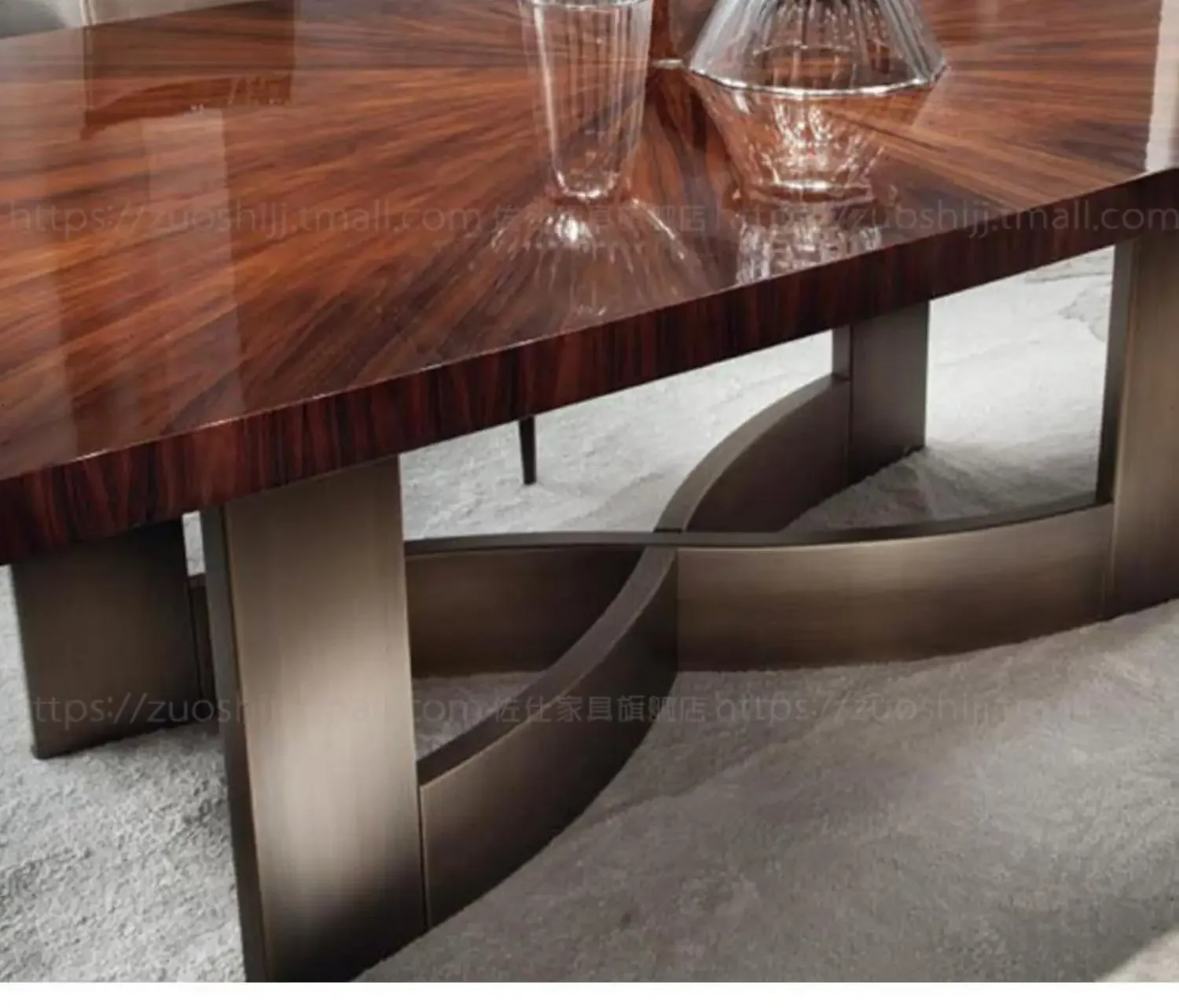 Stainless steel dining table for home use, light luxury 8-person dining table and chairs, walnut customization