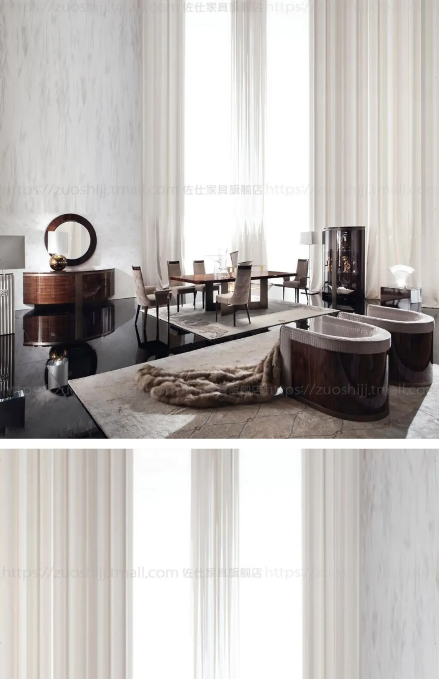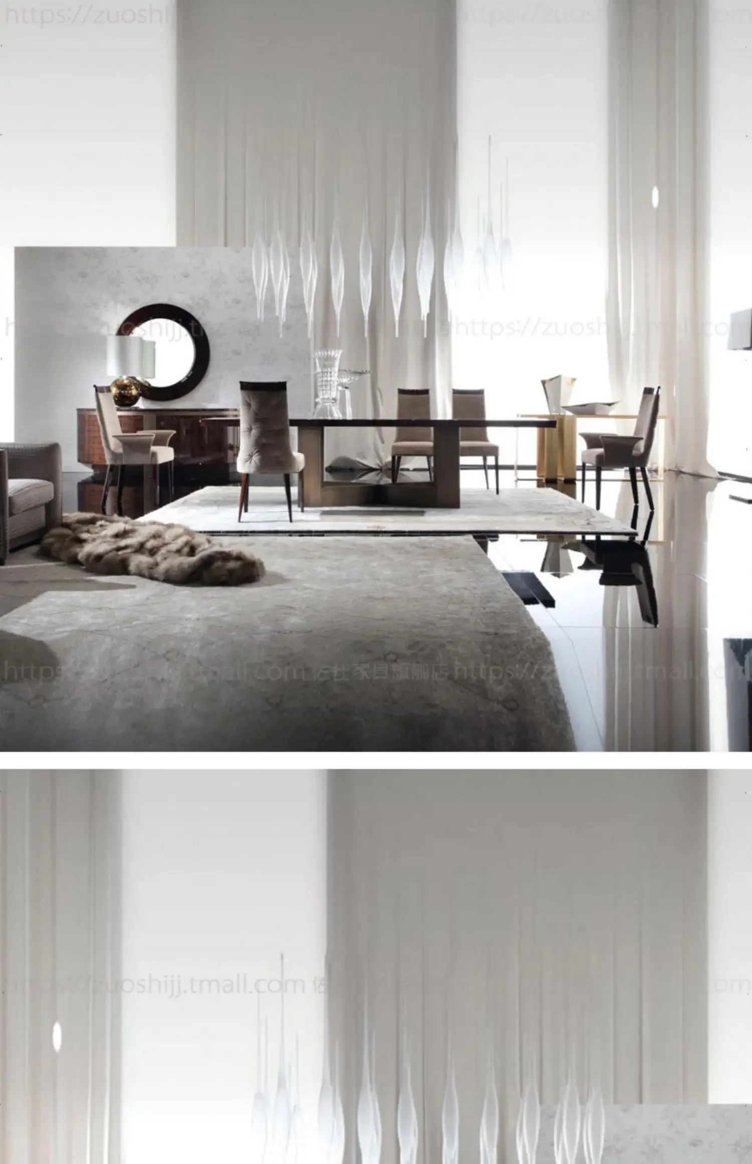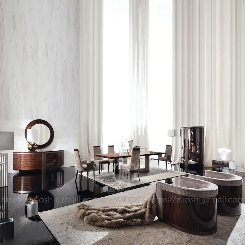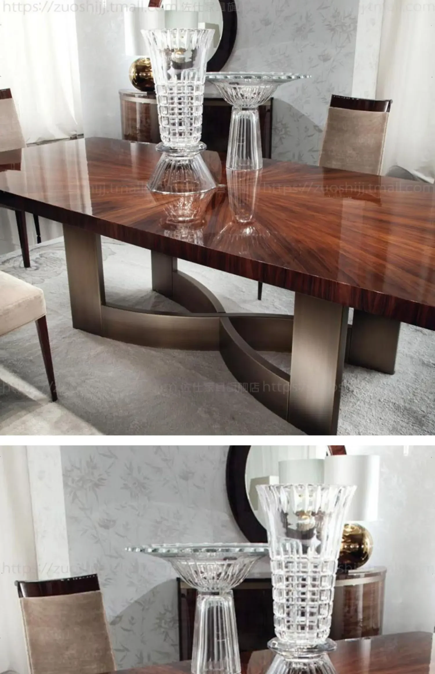 Stainless steel dining table for home use, light luxury 8-person dining table and chairs, walnut customization