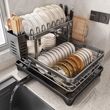 Stainless Steel Dish Drying Rack Adjustable Kitchen Plates Organizer with Drainboard Over Sink Plate Drainer Storage Organizer