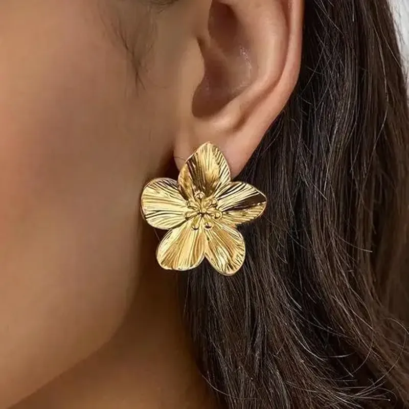 Stainless Steel Golden Double-Layer Hollow Flower Hoop Earring for Women Vintage Flower Earrings for Daily Wear Jewelry Gifts
