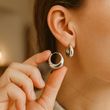 Stainless Steel Golden Double Layered Five Petal Flower Earring for Women Vintage Stripe Flower Dangle Earrings Jewelry Gifts