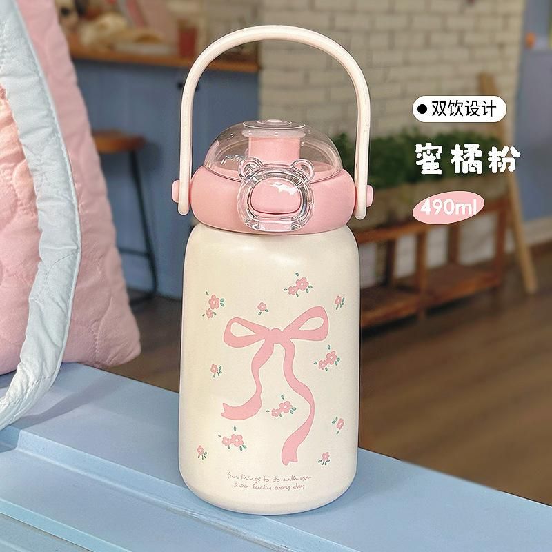 ♥Stainless Steel Insulated Cup 490ml Children's Straw Cup Portable Large Capacity Cute Water Bottle