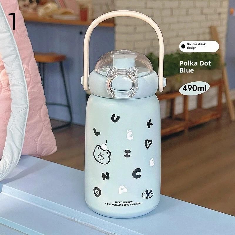 ♥Stainless Steel Insulated Cup 490ml Children's Straw Cup Portable Large Capacity Cute Water Bottle