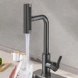 4.Effortless Temperature Control: Switch seamlessly between 'hot' and 'cold' with a simple turn of the handle. This single handle pull out faucet allows precise water temperature adjustment with ease.