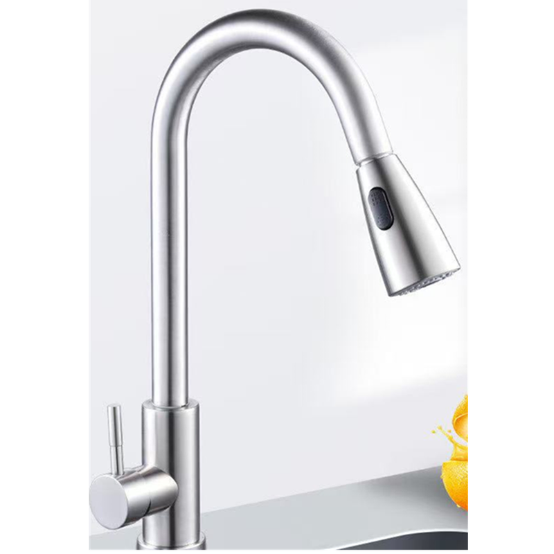 Stainless Steel Kitchen Faucet Single Hole Pull Out Spray 360° Swivel Sink Faucet High Arc Modern Design