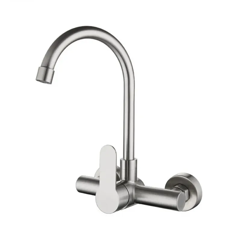 Stainless Steel Kitchen Faucet with Sprayer Double Hole Wall Mount Rotating Balcony Cold And Hot Water Tap Torneiras De Cozinha