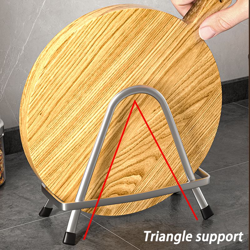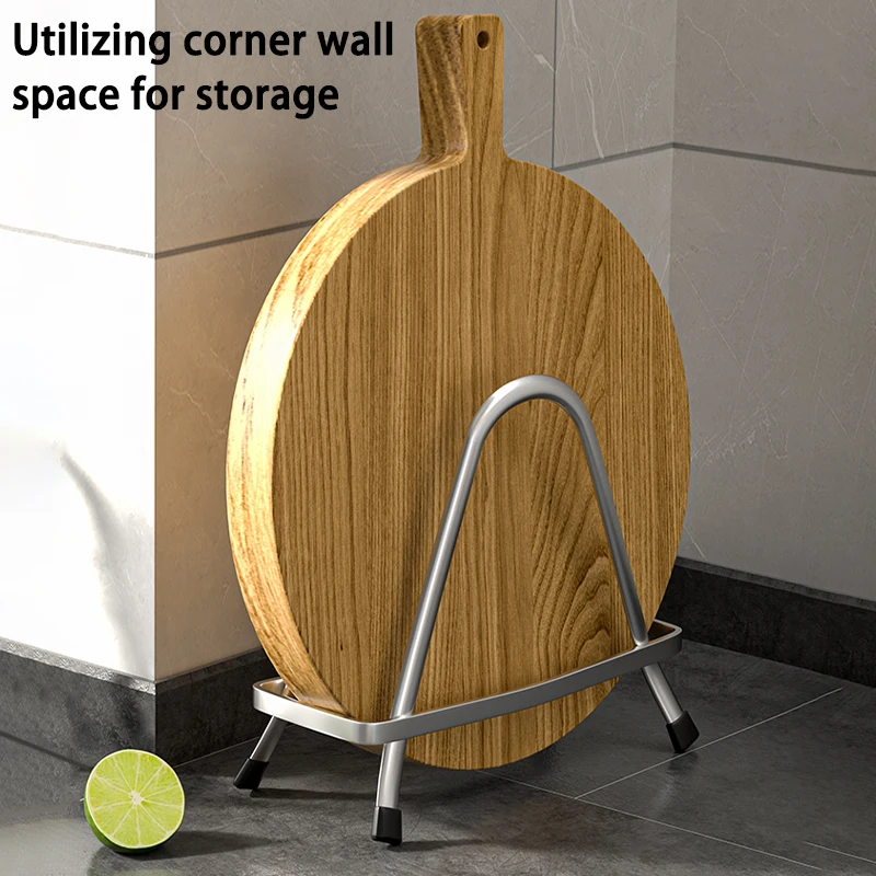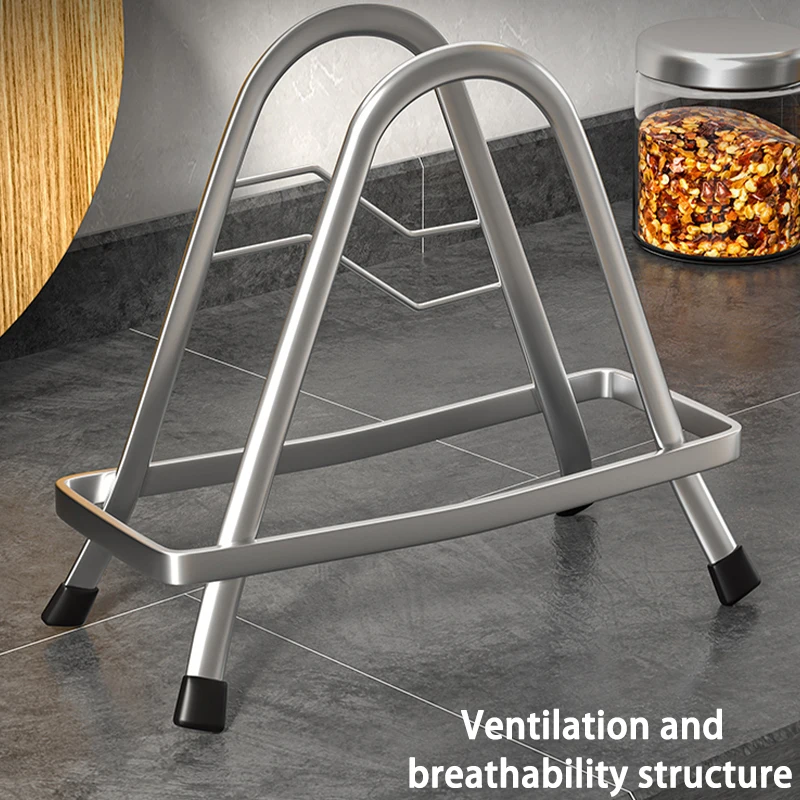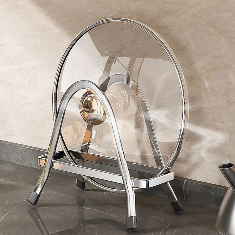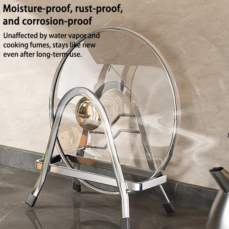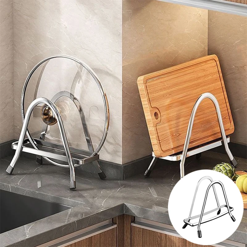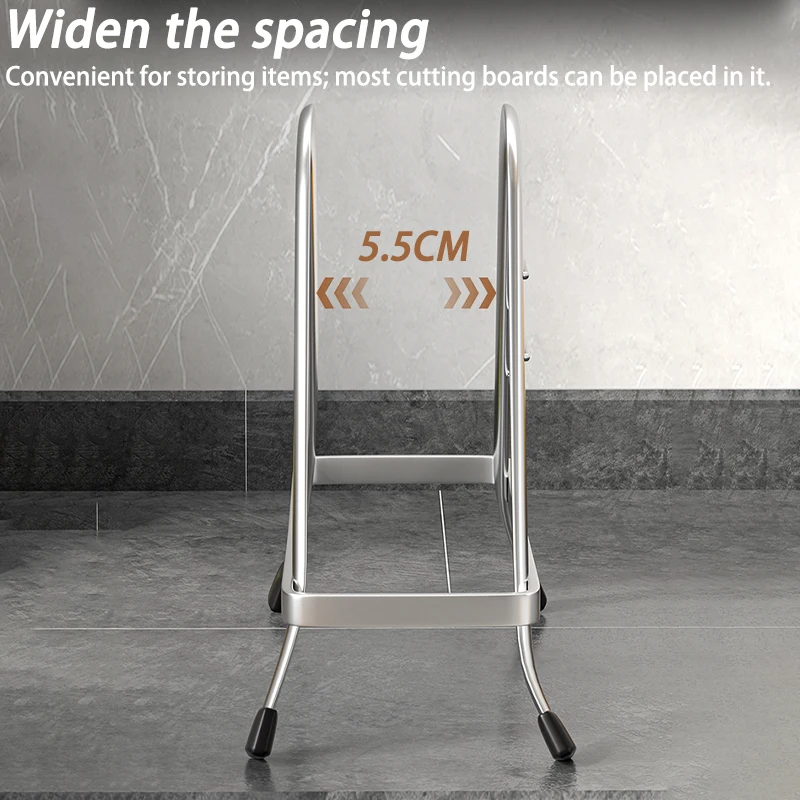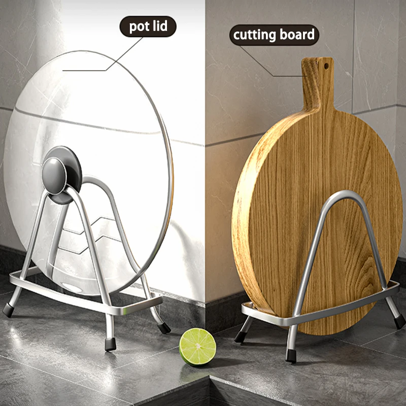 2. Convenient storage: This rack can hold not only pot lids, but also cutting boards and kitchen knives, helping you efficiently organize your kitchen space.