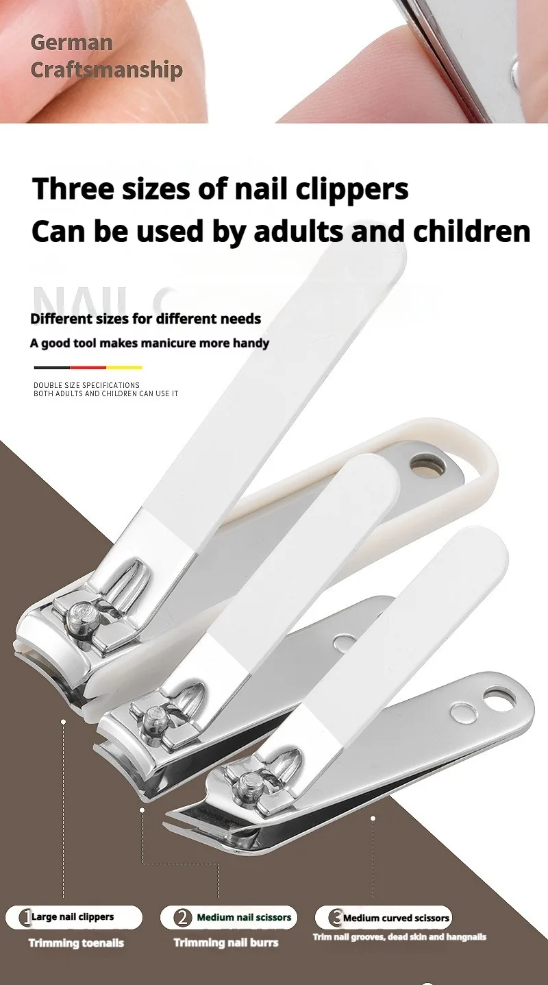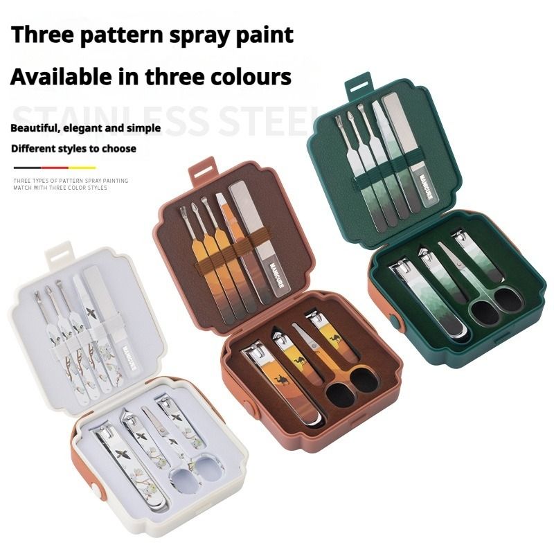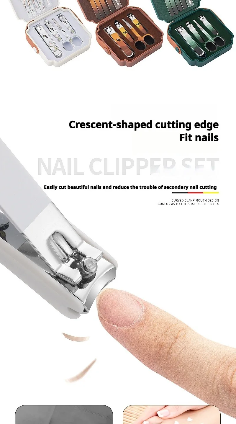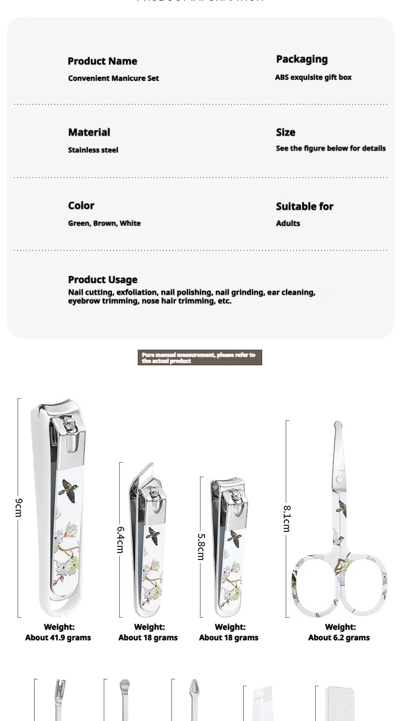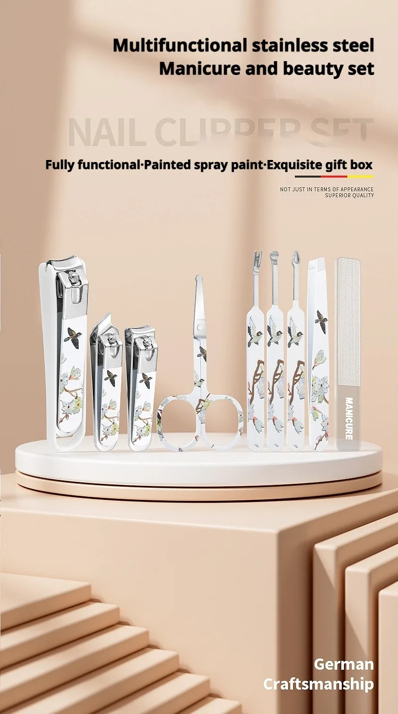 Stainless Steel Nail Clippers & Beauty Tool Set - 9Pcs Portable Grooming Kit for Home, Travel, Salon, Gifts (White/Brown/Green)