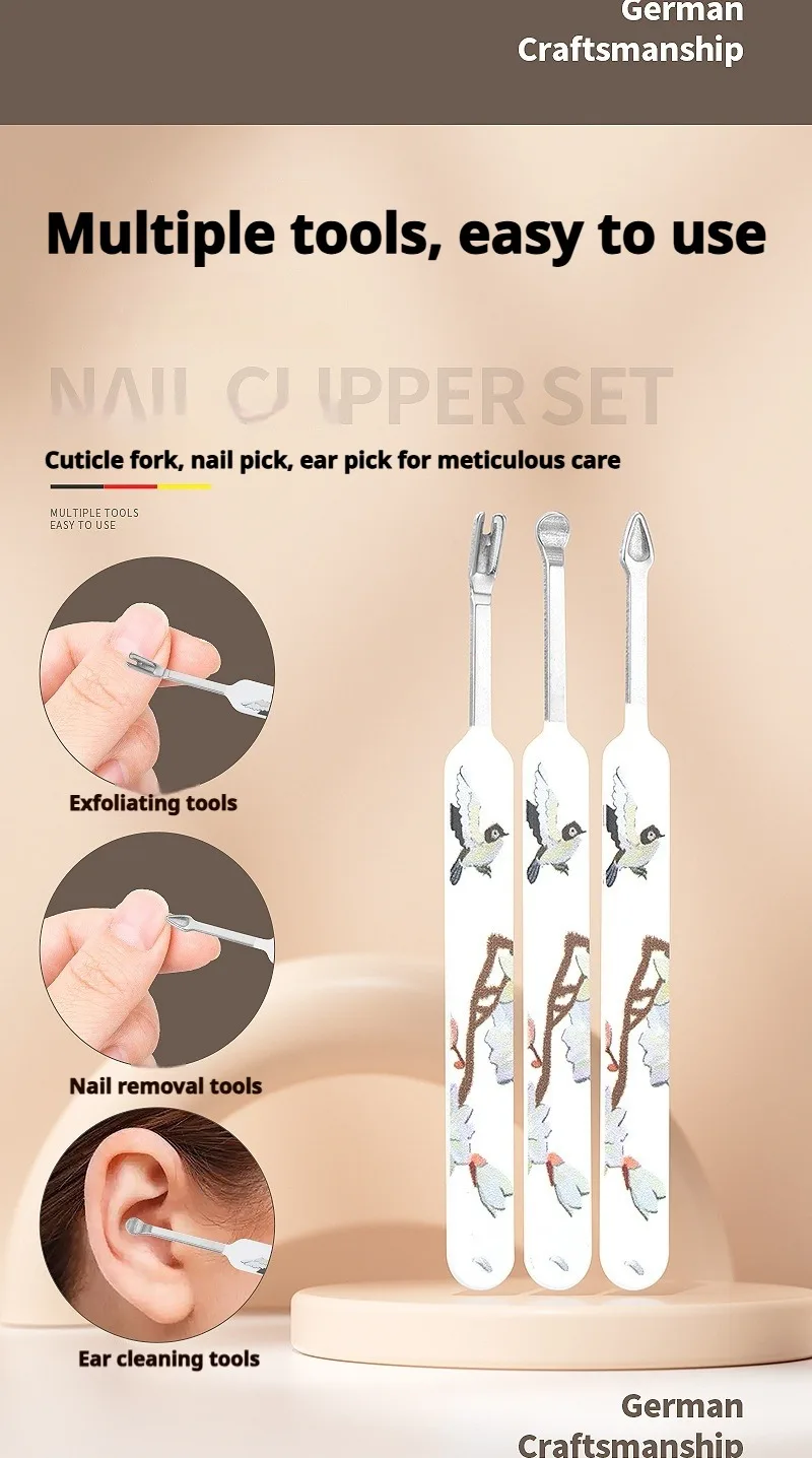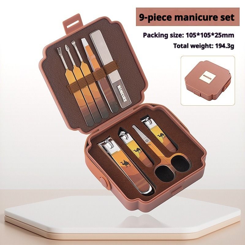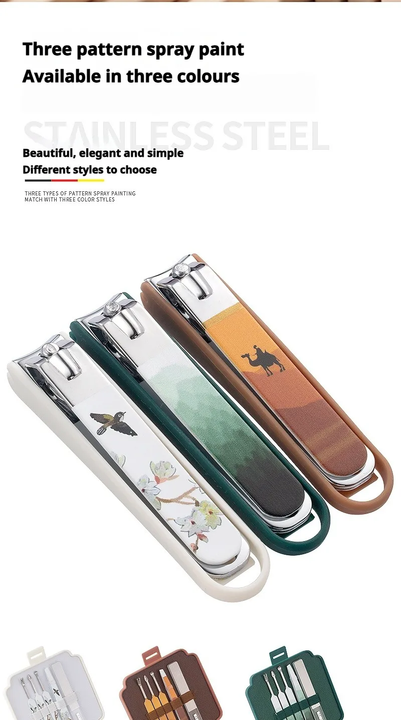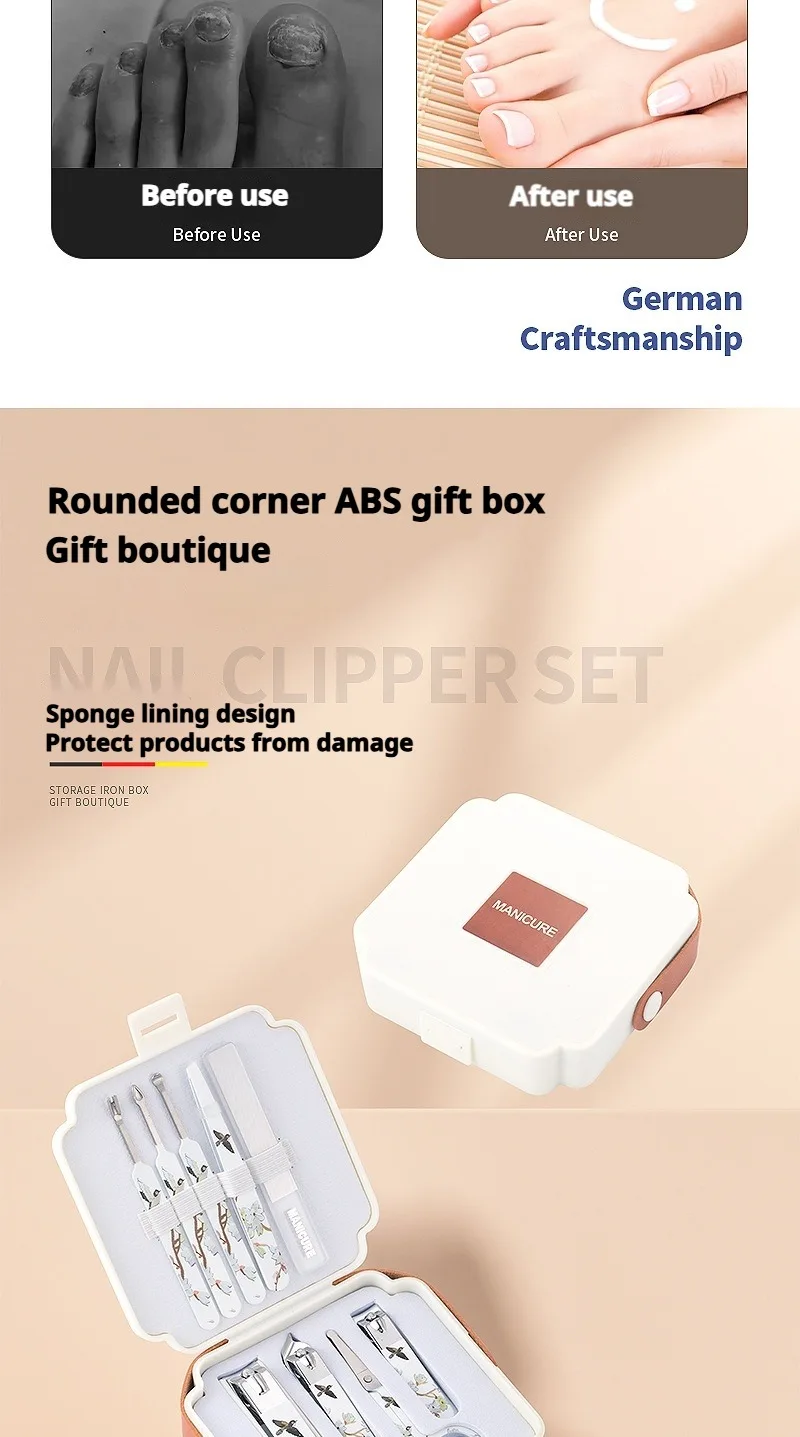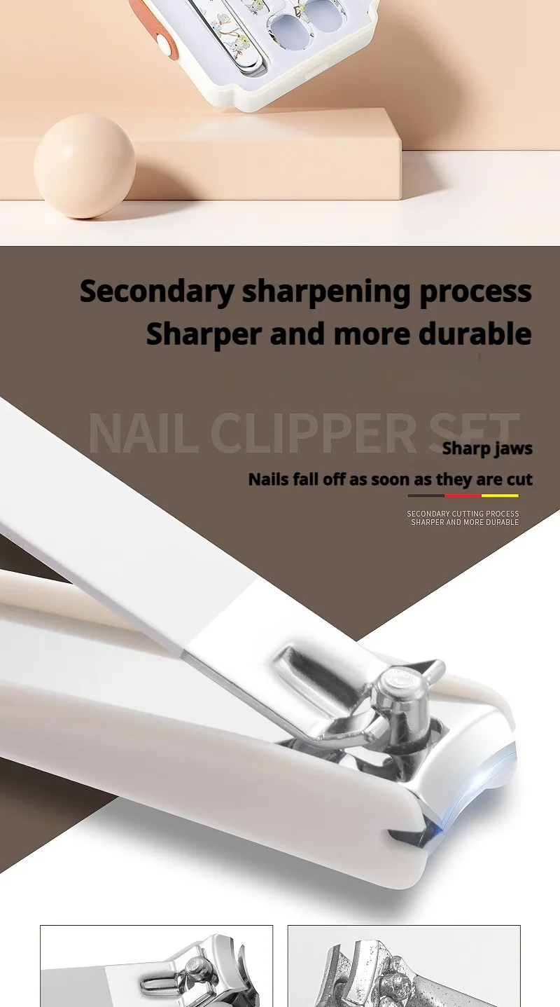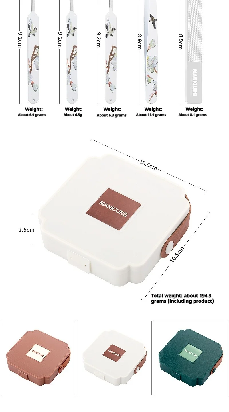 Stainless Steel Nail Clippers & Beauty Tool Set - 9Pcs Portable Grooming Kit for Home, Travel, Salon, Gifts (White/Brown/Green)