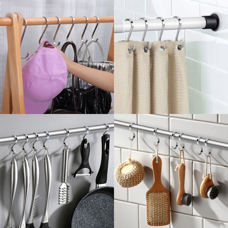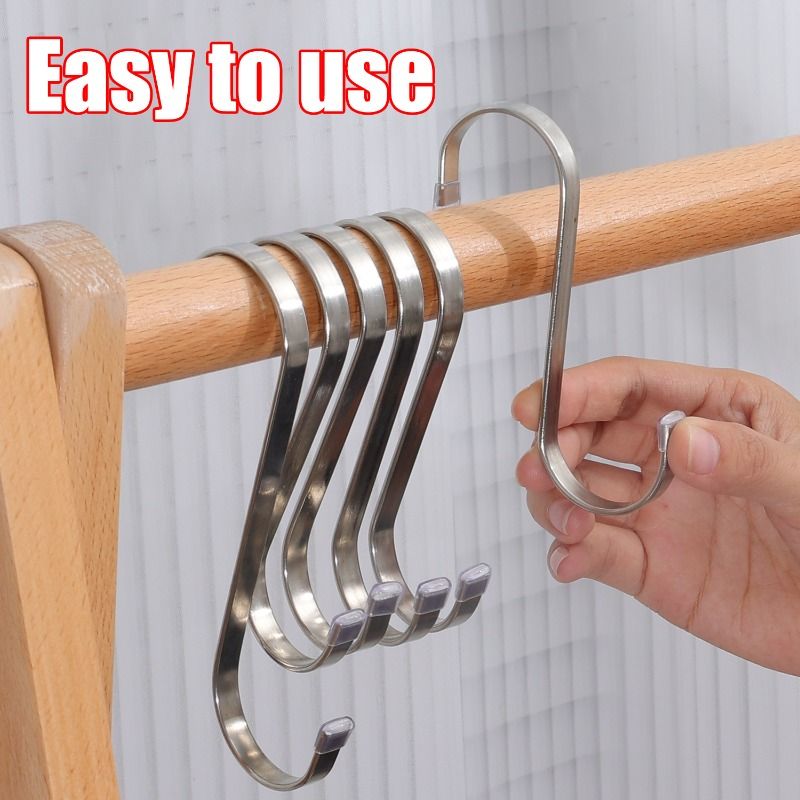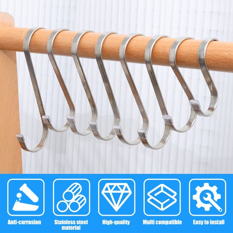 Stainless Steel S-shaped Hooks Heavy-Duty Railing S Hanger Multi-functional Towels Clothes Rack For Kitchen Bathroom Organizer