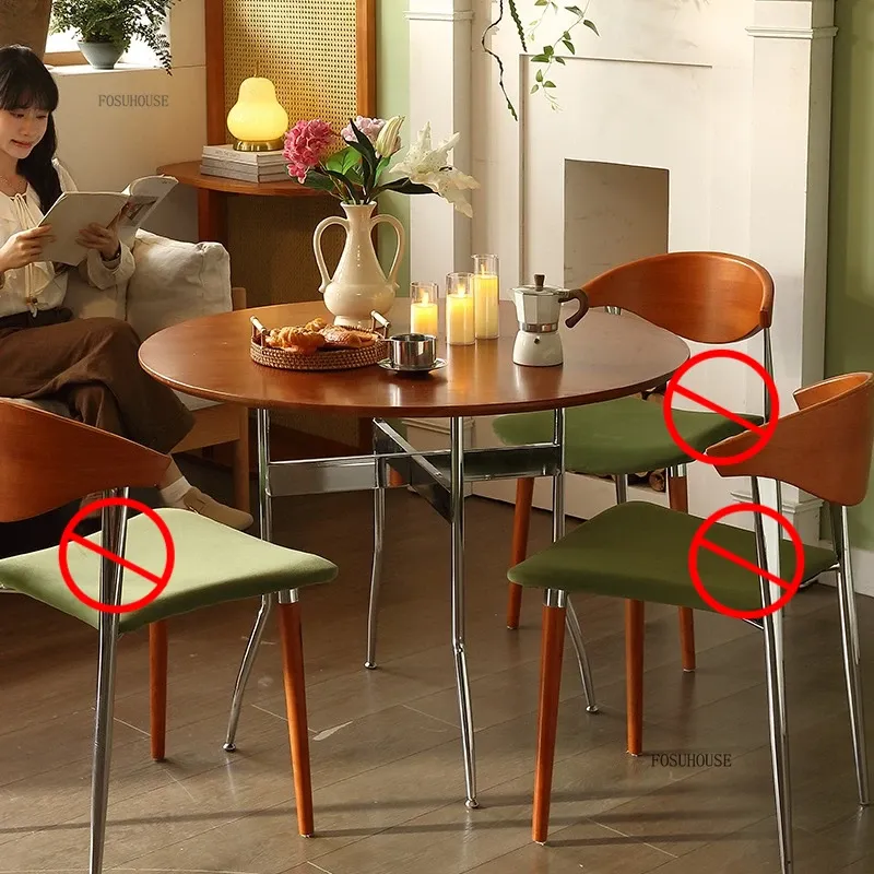 Stainless Steel Solid Wood Round Dining Tables Home Small Round Table for Kitchen Furniture Medieval Style Retro Folding Table