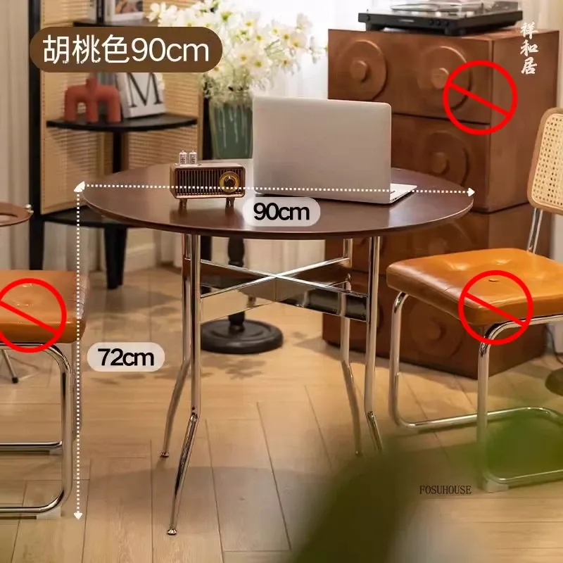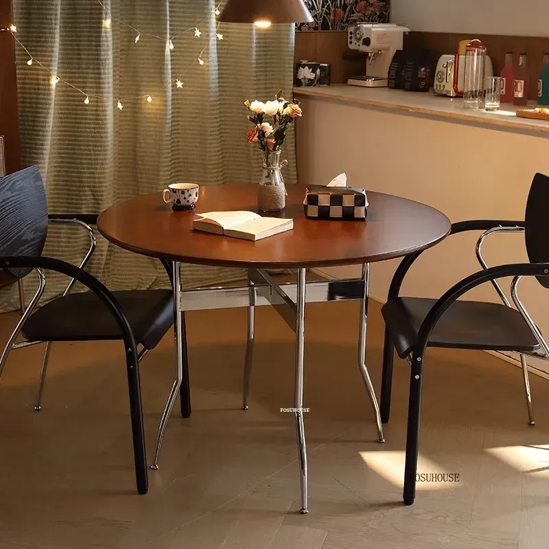 Stainless Steel Solid Wood Round Dining Tables Home Small Round Table Medieval Style Retro Folding Table for Kitchen Furniture