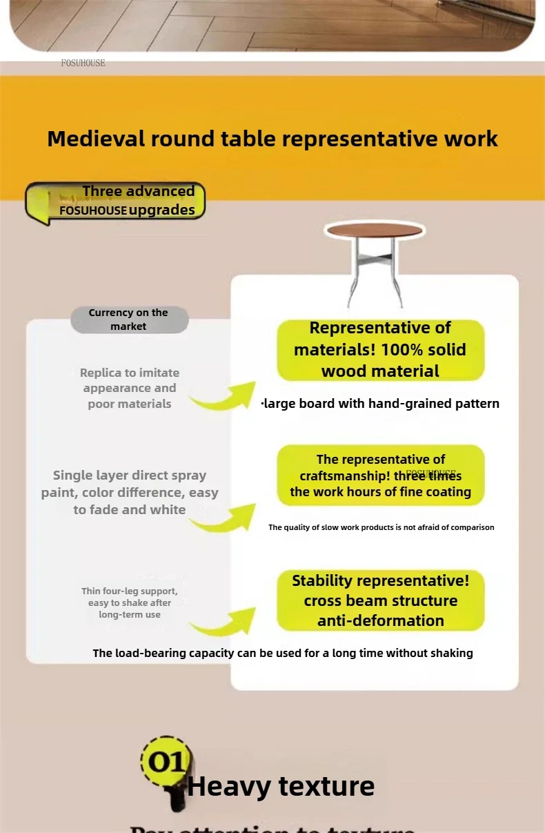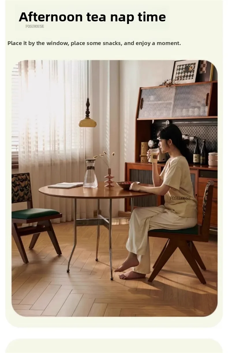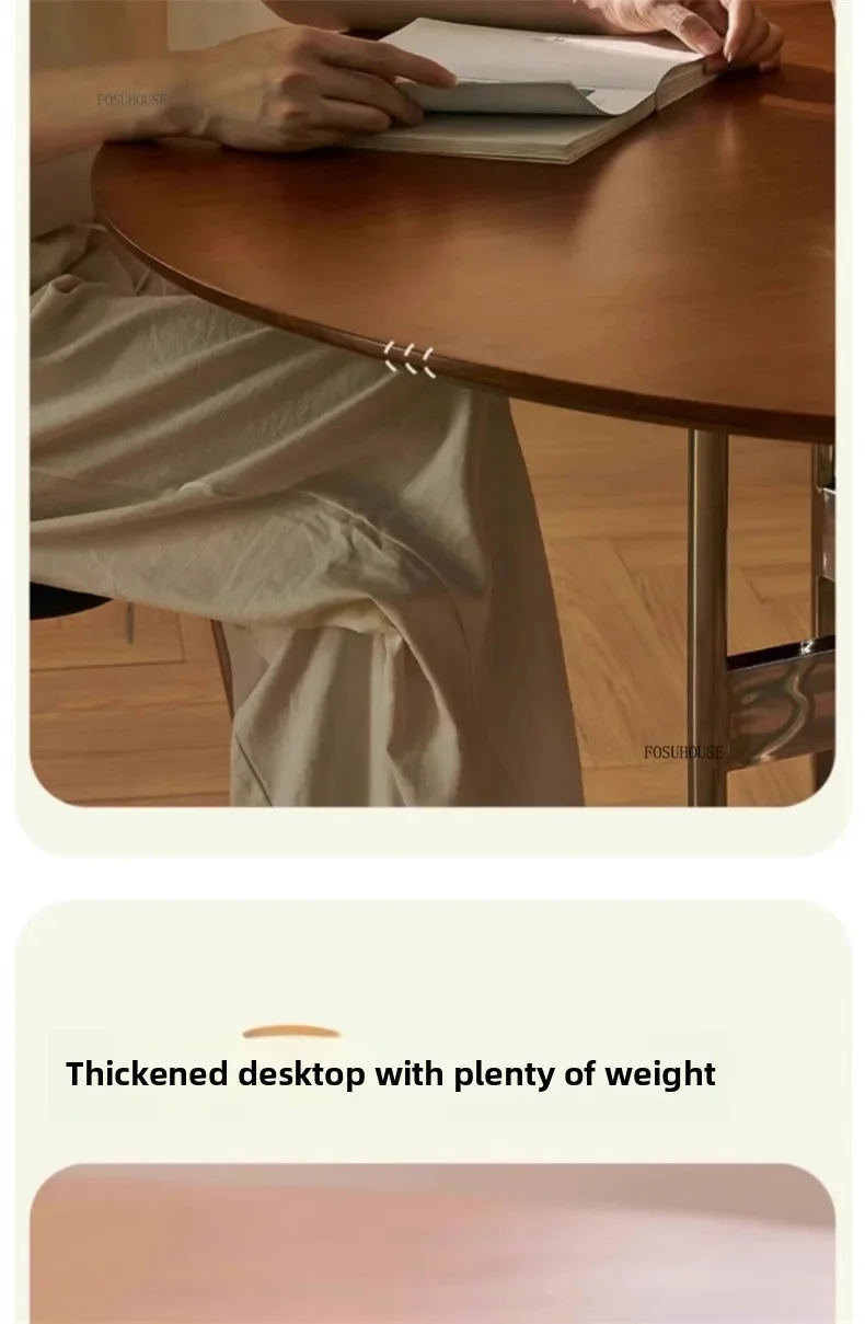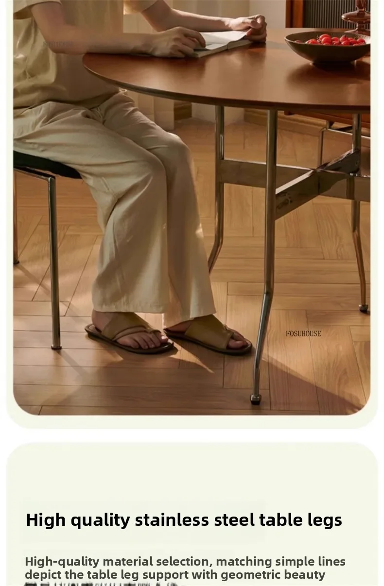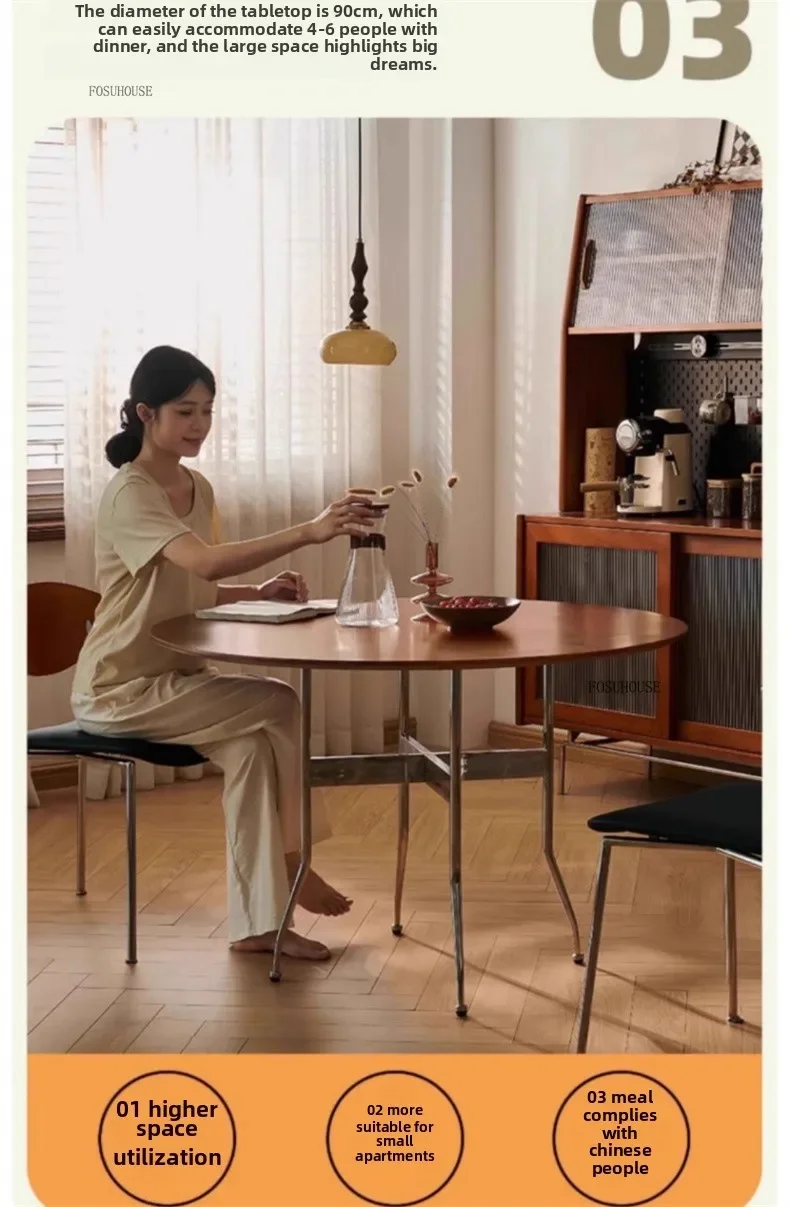 Stainless Steel Solid Wood Round Dining Tables Home Small Round Table for Kitchen Furniture Medieval Style Retro Folding Table