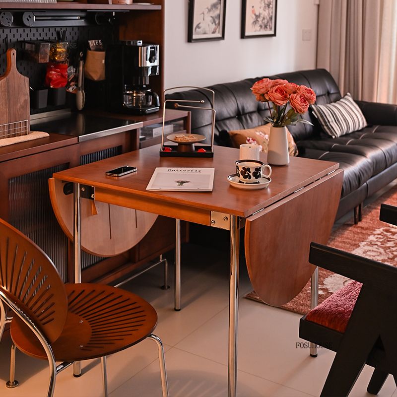Stainless Steel Solid Wood Round Dining Tables Home Small Round Table Medieval Style Retro Folding Table for Kitchen Furniture