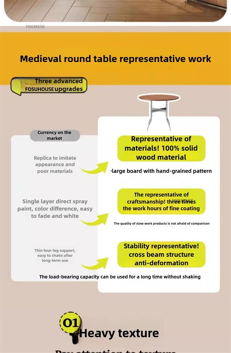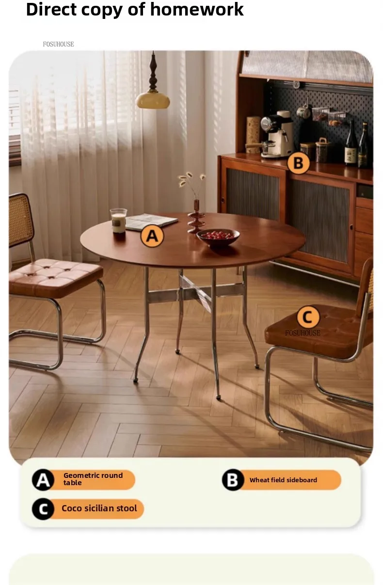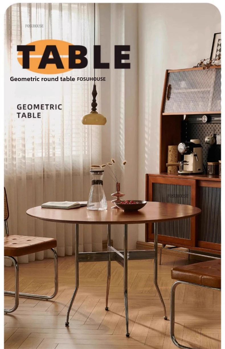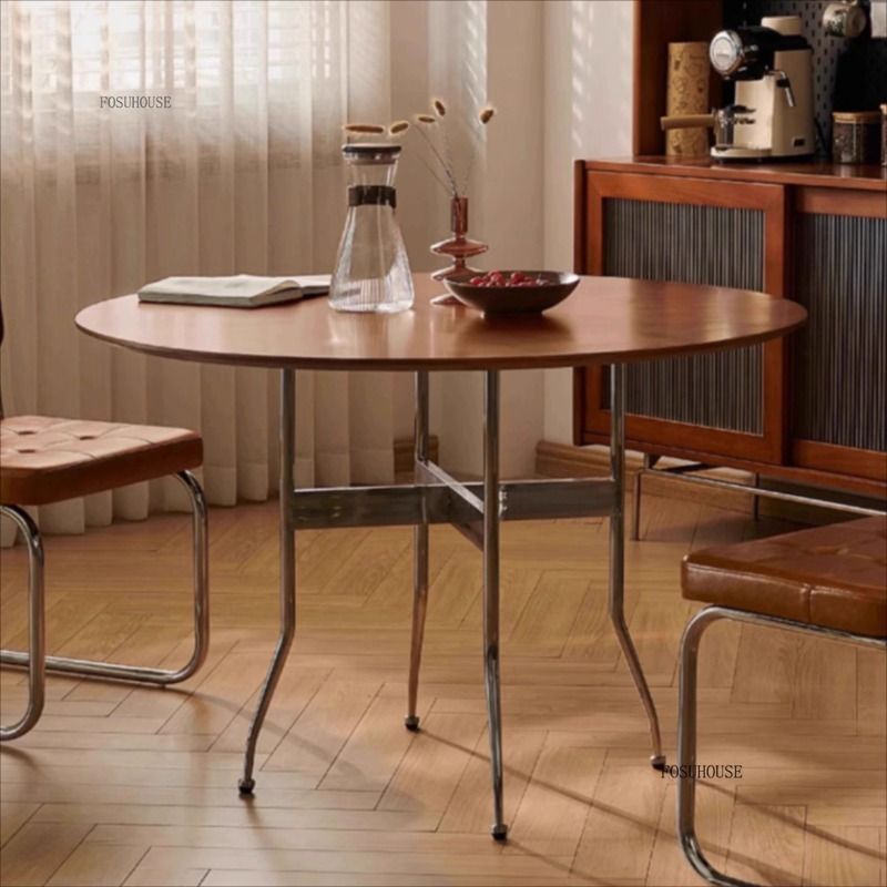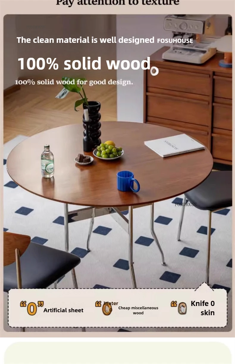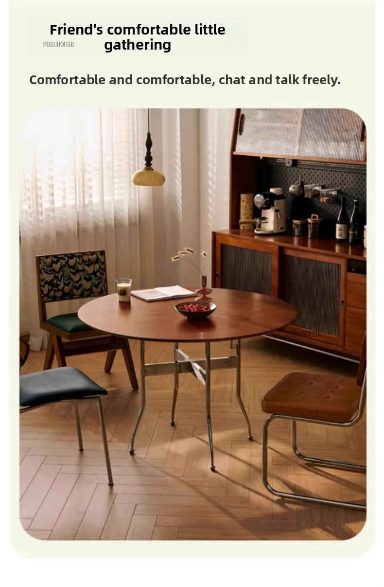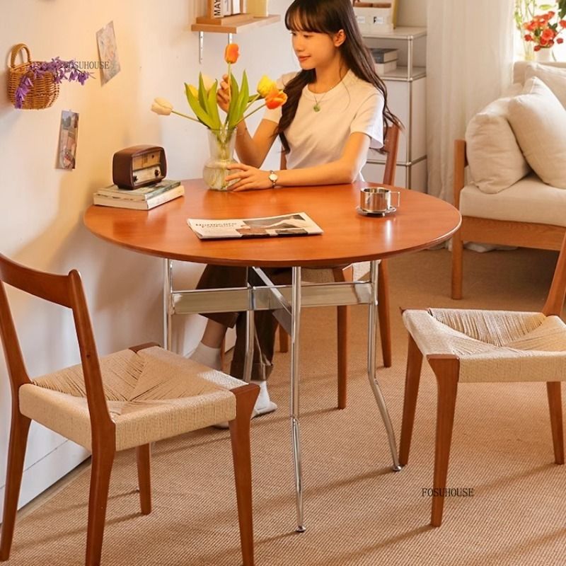 Stainless Steel Solid Wood Round Dining Tables Home Small Round Table Medieval Style Retro Folding Table for Kitchen Furniture