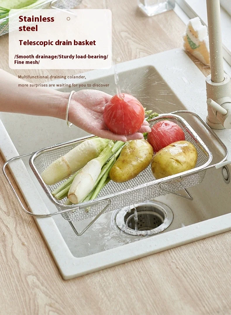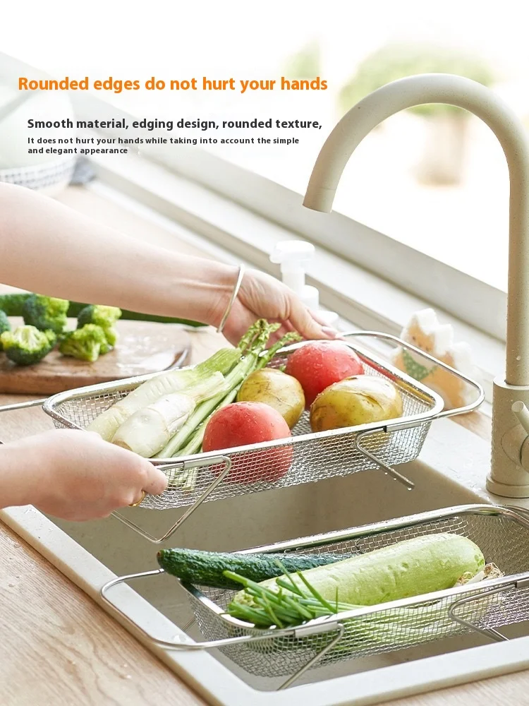 Stainless steel specialized drain basket Kitchen sink retractable vegetable washing basin Drain rack tableware drain rack