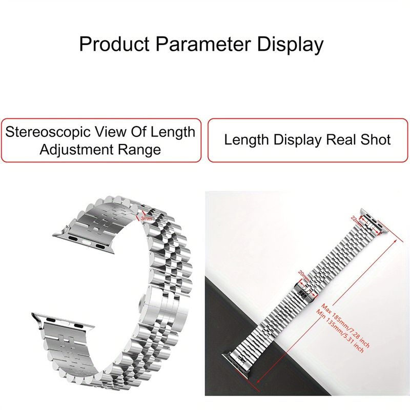 【Easy Installation and Removal】The watch band fit for iwatch 8 is designed for hassle-free installation and removal, allowing you to switch between different bands effortlessly. With attached convenient link removal tool, you can easily customize your Watch to match your style or occasion.