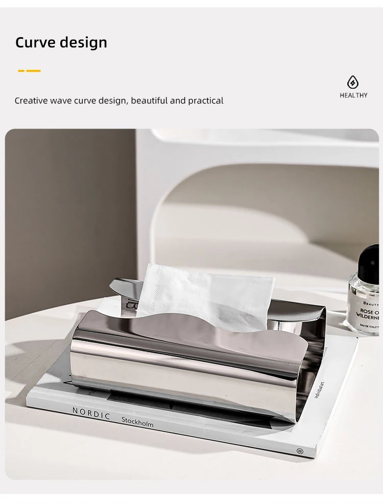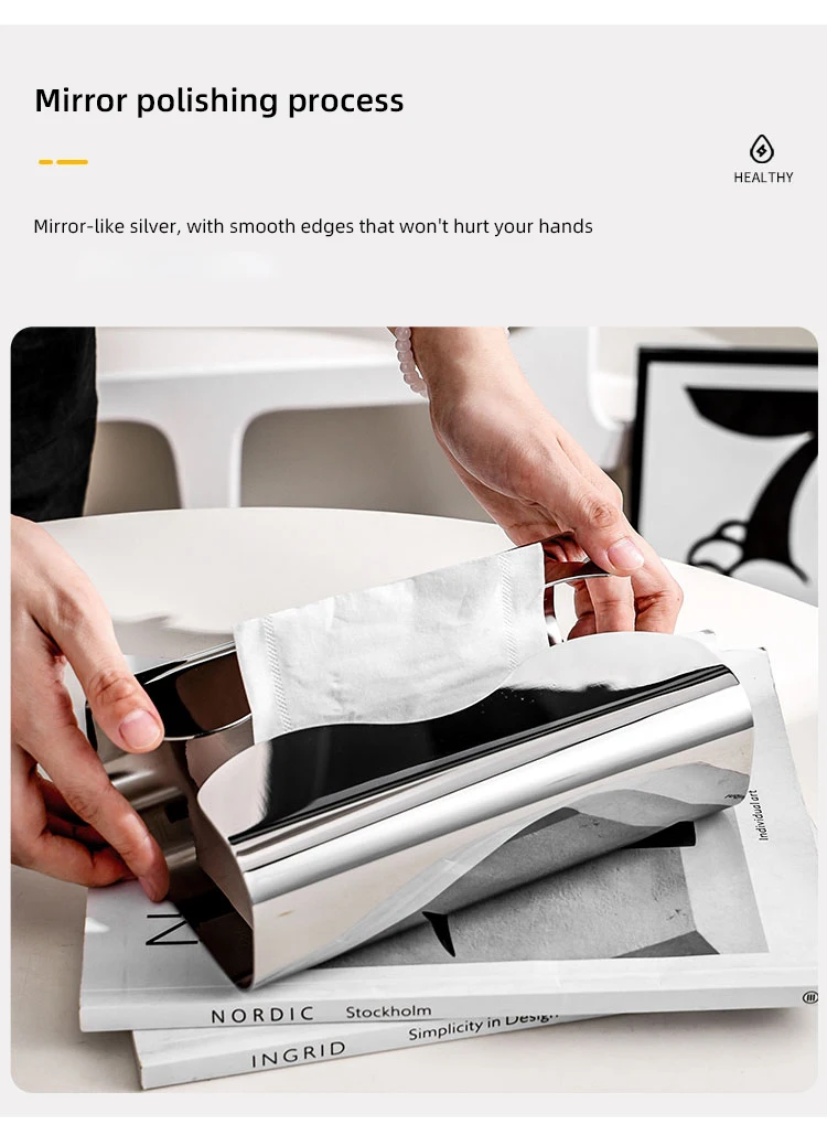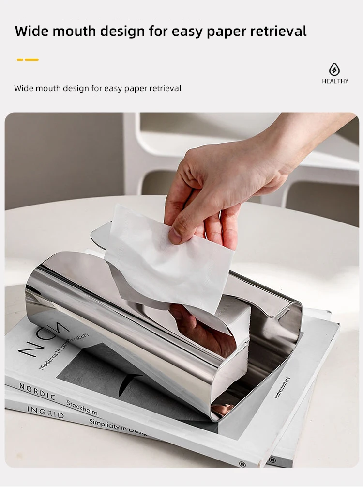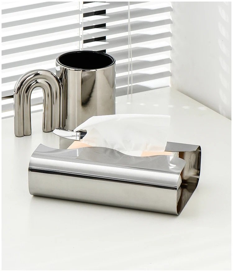 Stainless Steel Tissue Box, Artistic Pull-Paper Dispenser with Irregular Design - Desktop/Living Room Napkin Holder & Tissue Distributor for Living Room, Bedroom, Kitchen, Hotel