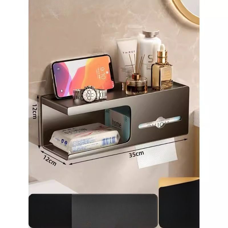 Stainless Steel Wall Mounted No Drill Toilet Paper Holder Bathroom Tissue Roll Paper Napkin Paper Rack Storage Shelf