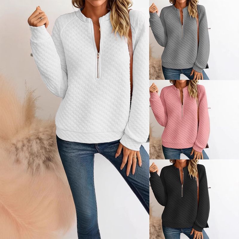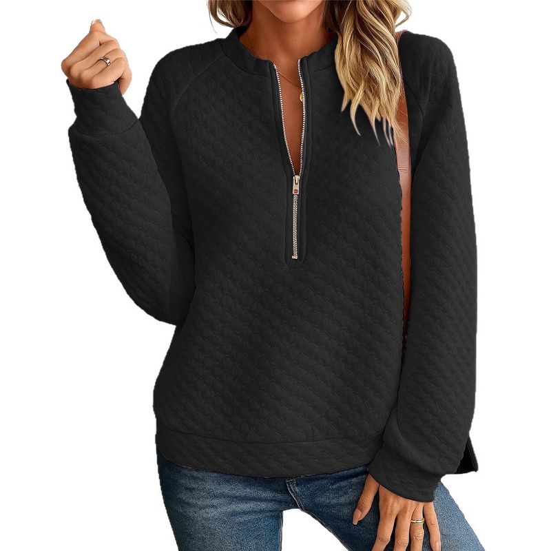 Stand Collar Long Sleeve Women's Pullover Multi-color Top Black XXXL