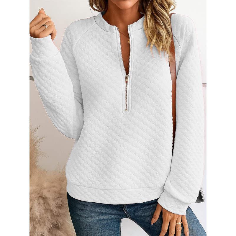 Stand Collar Long Sleeve Women's Pullover Multi-color Top White XL