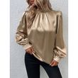 Stand-up Collar Puff Sleeve T-shirt Female Satin Champagne S