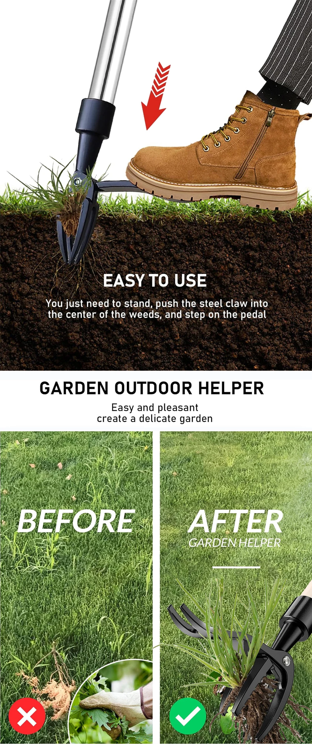This manual weed remover claw is designed to efficiently pull up weeds, making gardening easier.