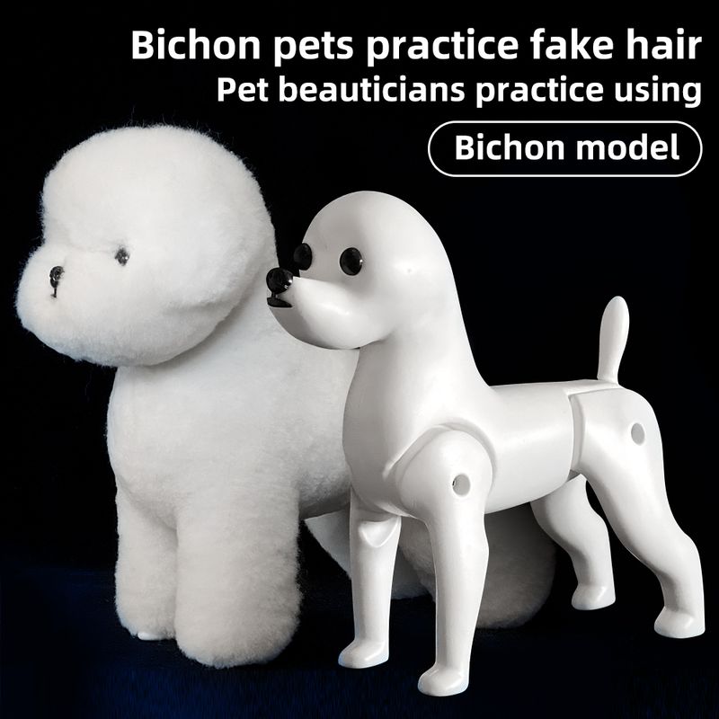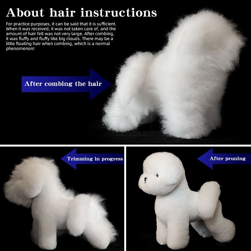 Standard Bichon Pet Simulation model Dog for Grooming Practice Fake Hair Trim And Style Must Be Used with Skeleton Model