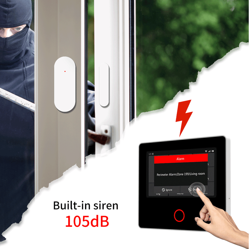 Built-in 105-decibel siren & Buzzer, the sound is loud and penetrating, letting you know the abnormal situation in your home at the first time.