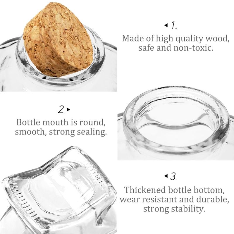 ⭐⭐【Premium Material】Made of high borosilicate glass, no bubbles, completely transparent, durable and shatterproof. The cork is a smooth and good seal, not easy to drop residue that can be firmly plugged bottle mouth.