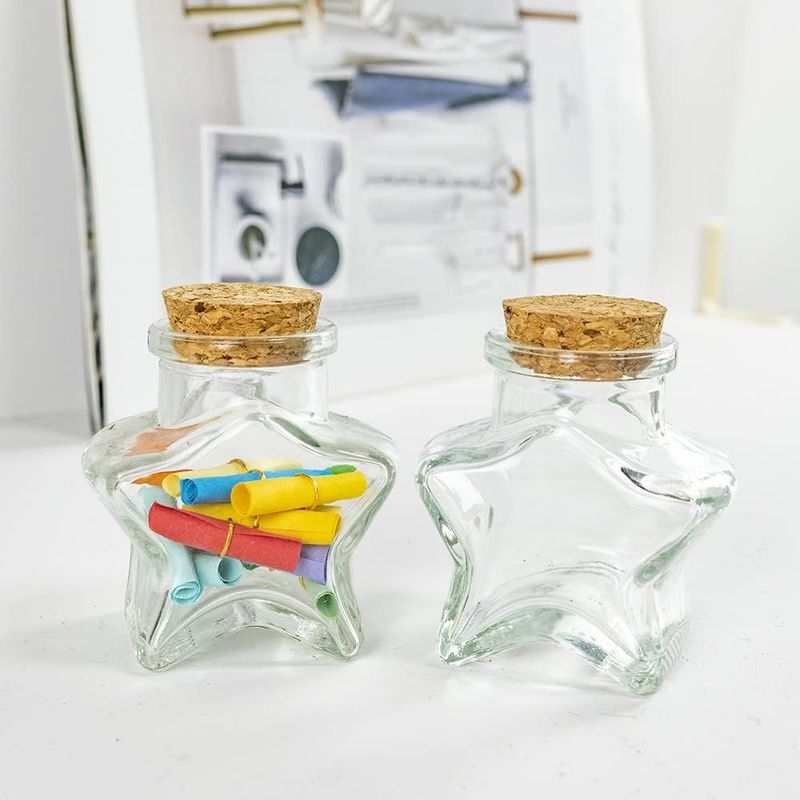 ⭐⭐【Transparent Bottle Body】Each glass bottle is well made, with smooth surfaces and corners, suitable for storing shiny stones, five-pointed stars, decorative objects and creating a romantic and warm atmosphere.