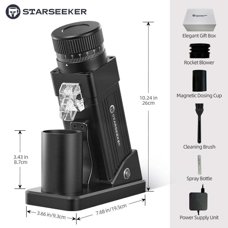 STARSEEKER E55Pro Electric Coffee Grinder 55MM Espresso Cone burr Stepless Fineness Adjustment Cold Brew Bean Grinder Black