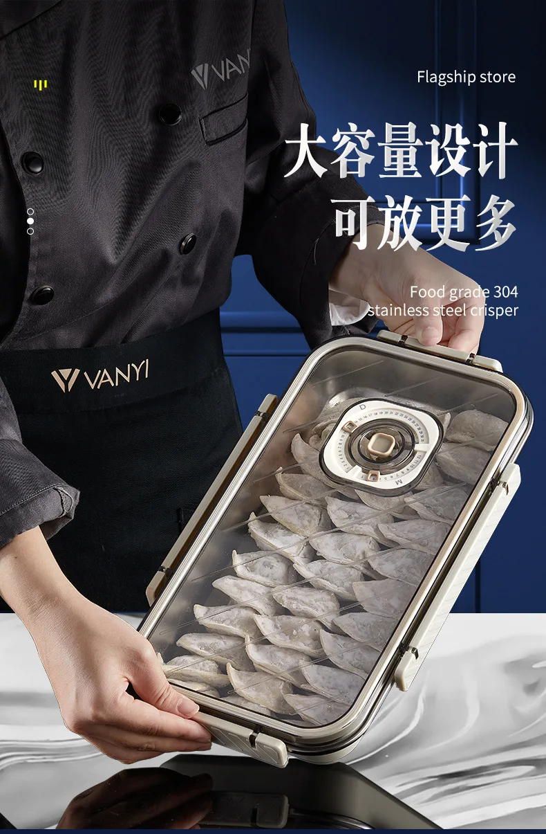 Steel Crisper Sealed Dumpling Box, Food Grade Lunch Box, Refrigerator, Frozen Household, Dumpling Box, wonton Storage Box