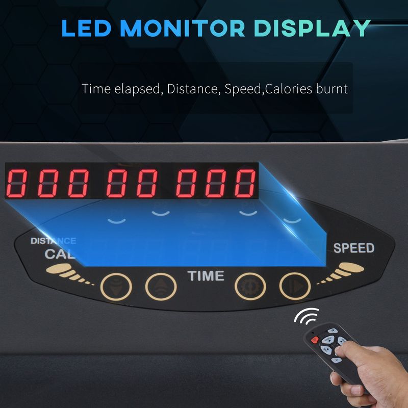 Get your fitness into gear with this treadmill from , it helps you to get fit and increase your stamina. The LCD monitor on the front can also track your time elapsed, distance, speed and calories burnt, which will keep you more focused whilst working out. It is finished with an emergency button and safety key which immediately stops it moving when pressed from safety. The treadmill can also be fold and is equipped with two wheels so that it is easy for storage when not in use. A must-have for when you’re stuck indoors and want to keep active.